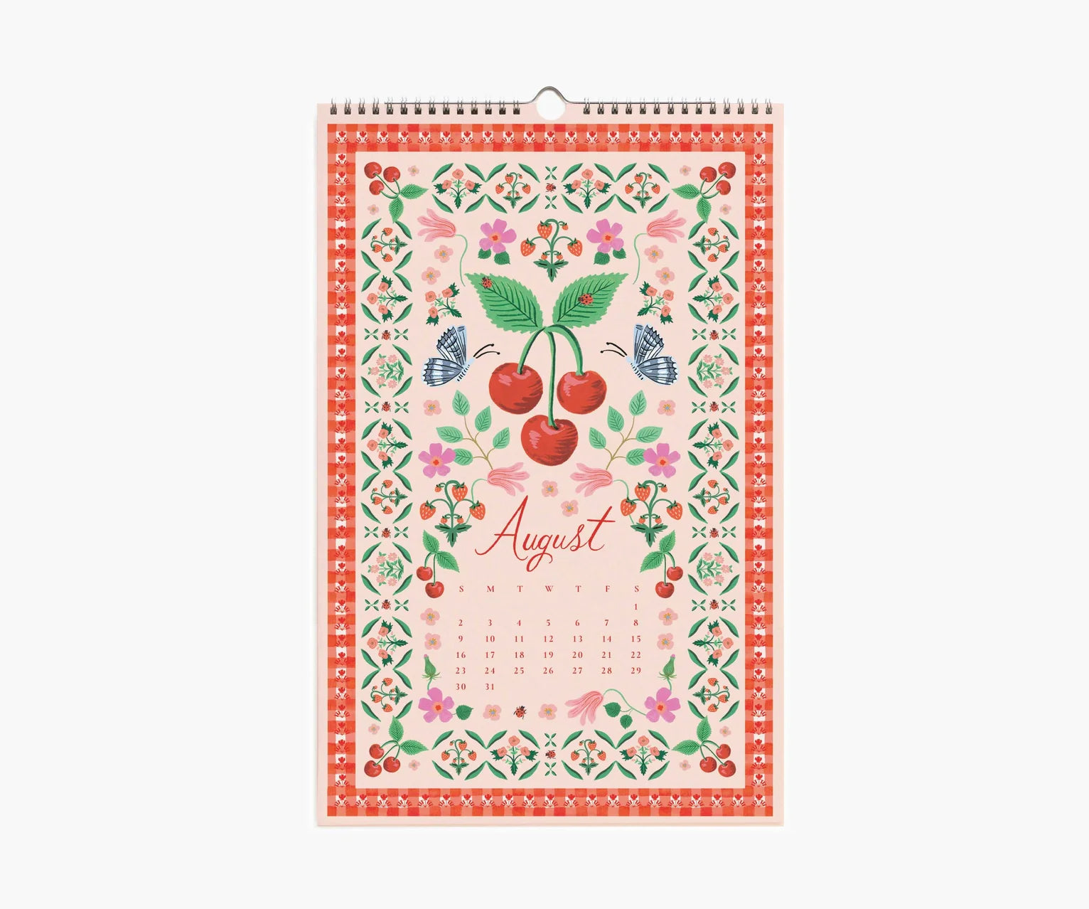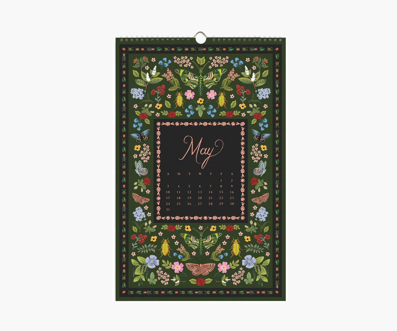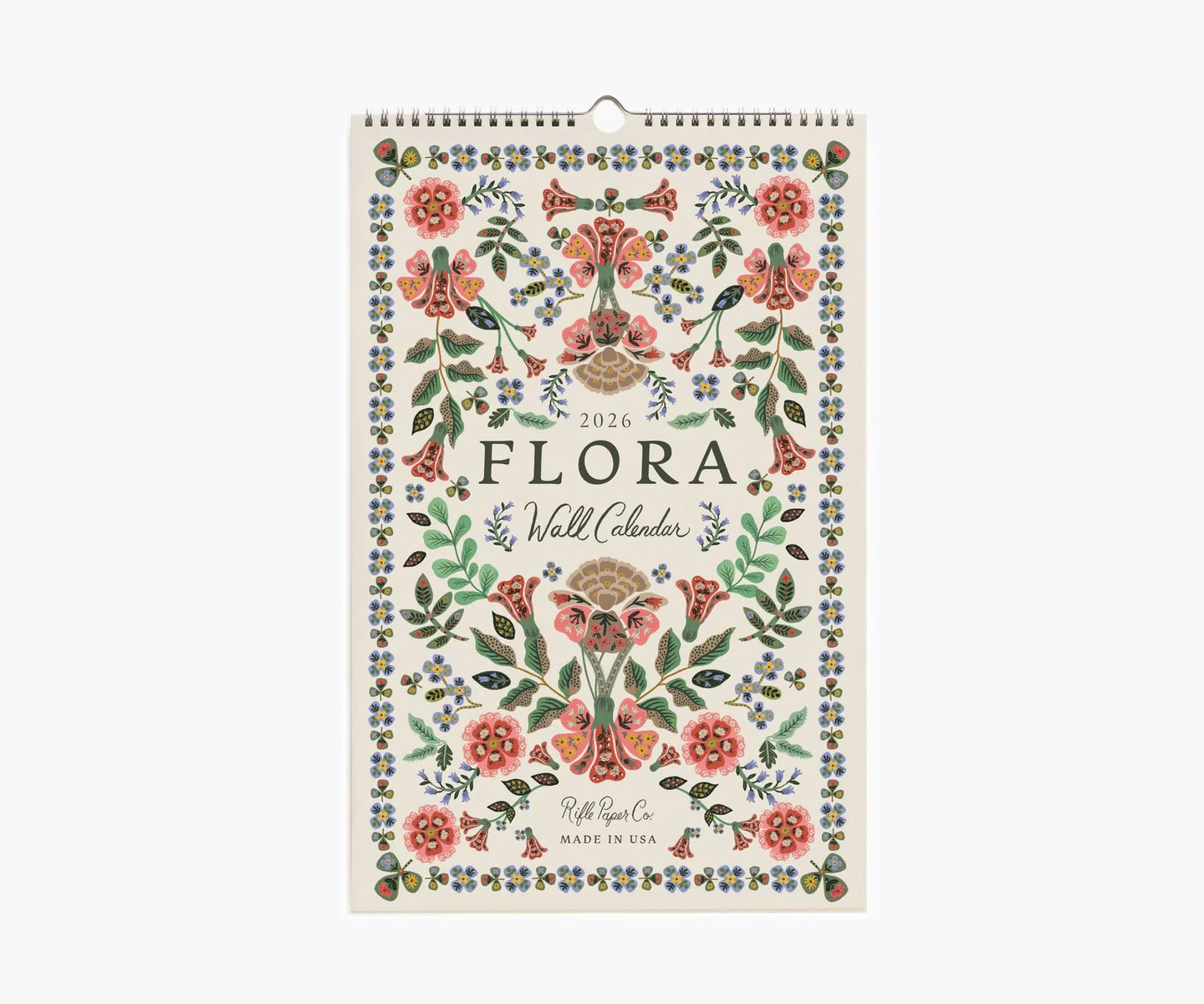 2026 Flora calendar includes 12 months of lush illustrations, based on our new Gracie floral pattern, finished with a spiral binding and center notch for simple hanging.