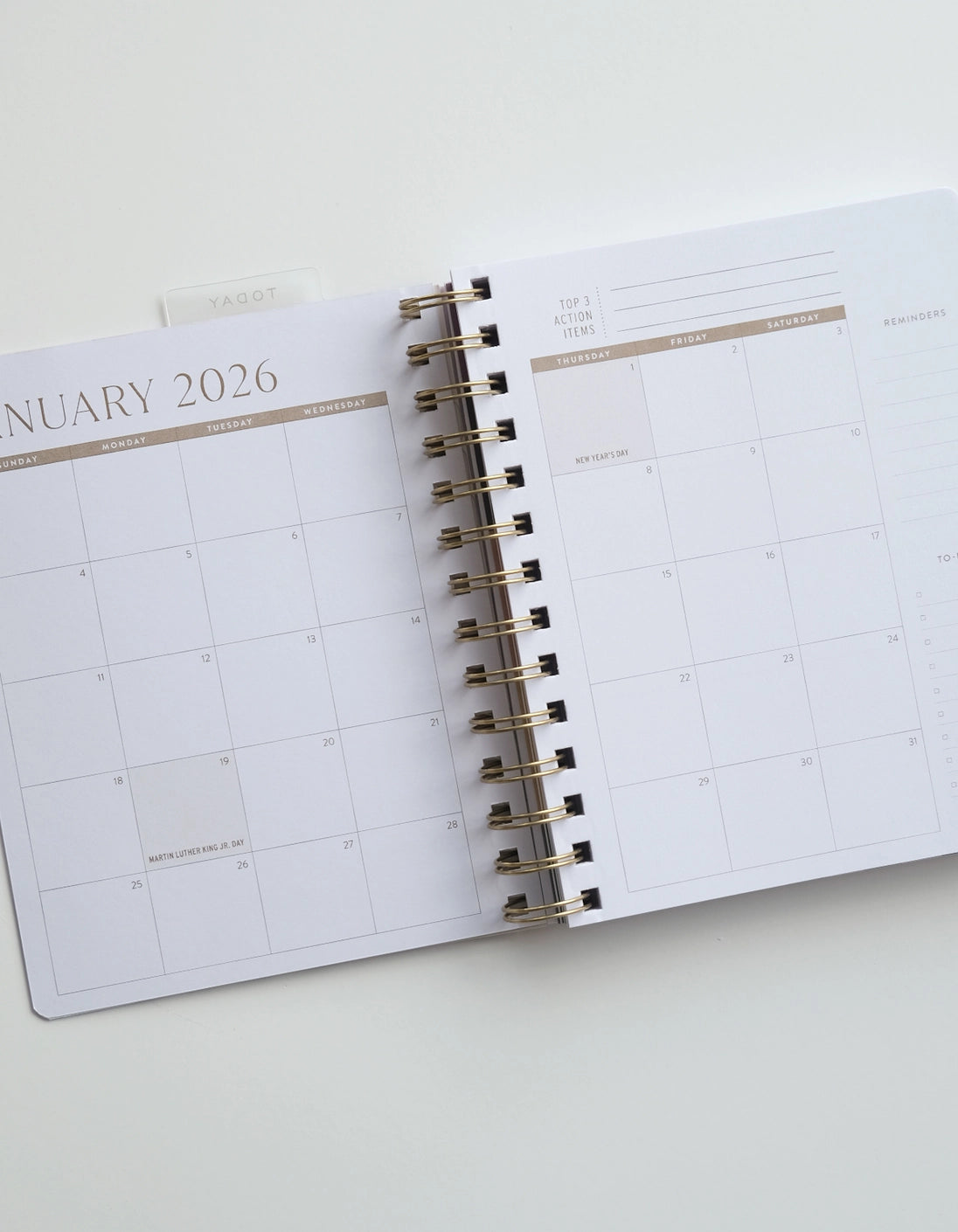 A new format of Planner for 2026! This smaller-scale format is the perfect size for throwing in any bag and toting to the classroom or office. This linen-finished soft-cover planner features bold, full-color graphics, sections for daily, weekly, and monthly plans, as well as handy year-at-a-glance, goal-tracking, and notes sections. Fun –yet functional– additions like a detachable ruler bookmark make sure all your plans fall in line…beautifully!