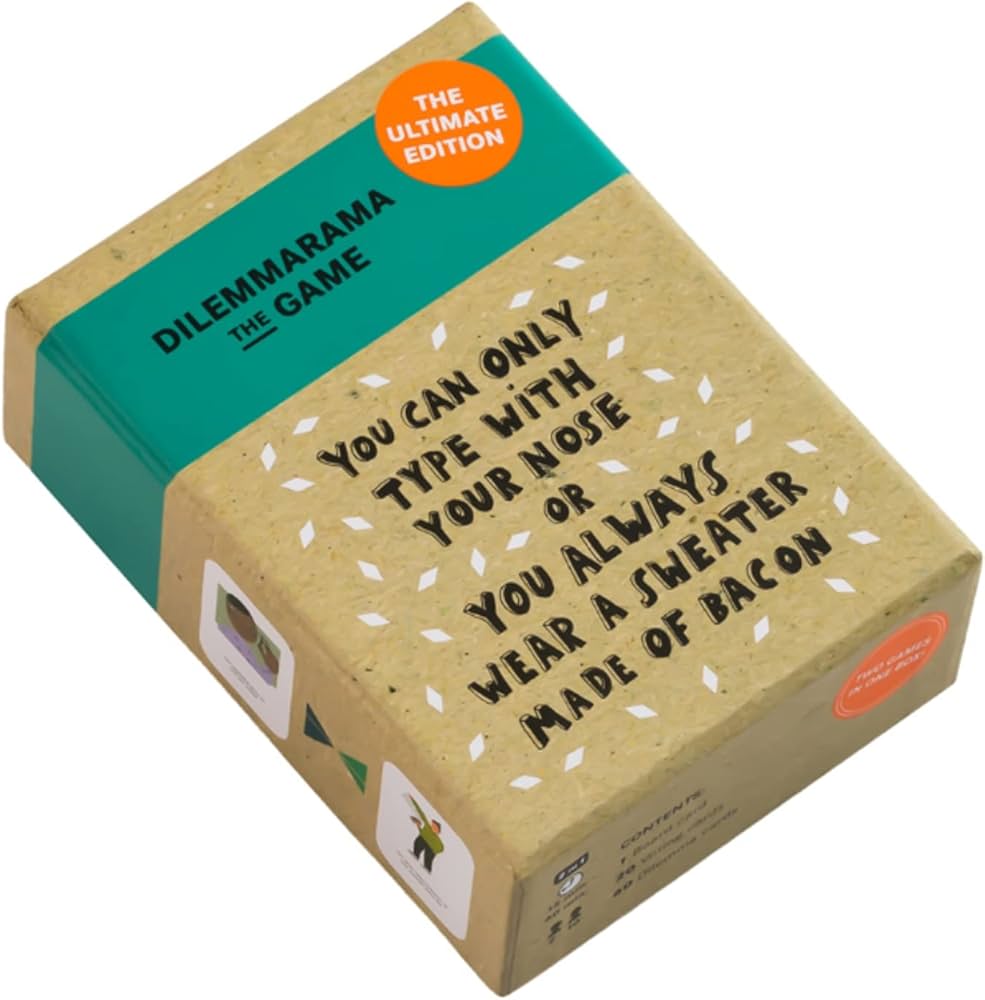 The Ultimate Edition can be used as a stand-alone deck but it can also be combined with Dilemmarama The Game: The Original Edition, expanding the game to 120 cards with over 7,000 new combinations.