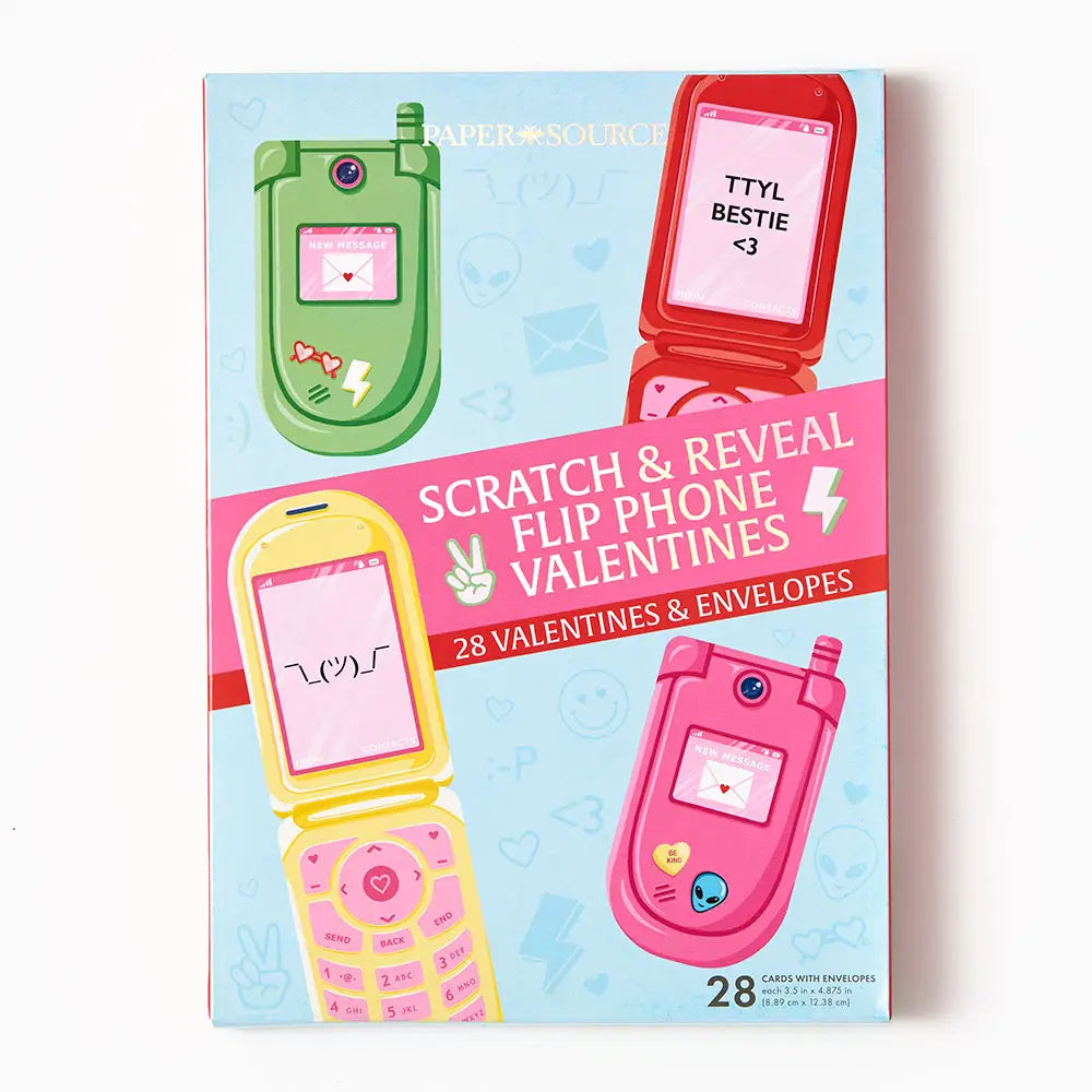 Step into nostalgia with this adorable flip phone Valentine's Day stationery set of 28! Perfect for kids parties & school events!