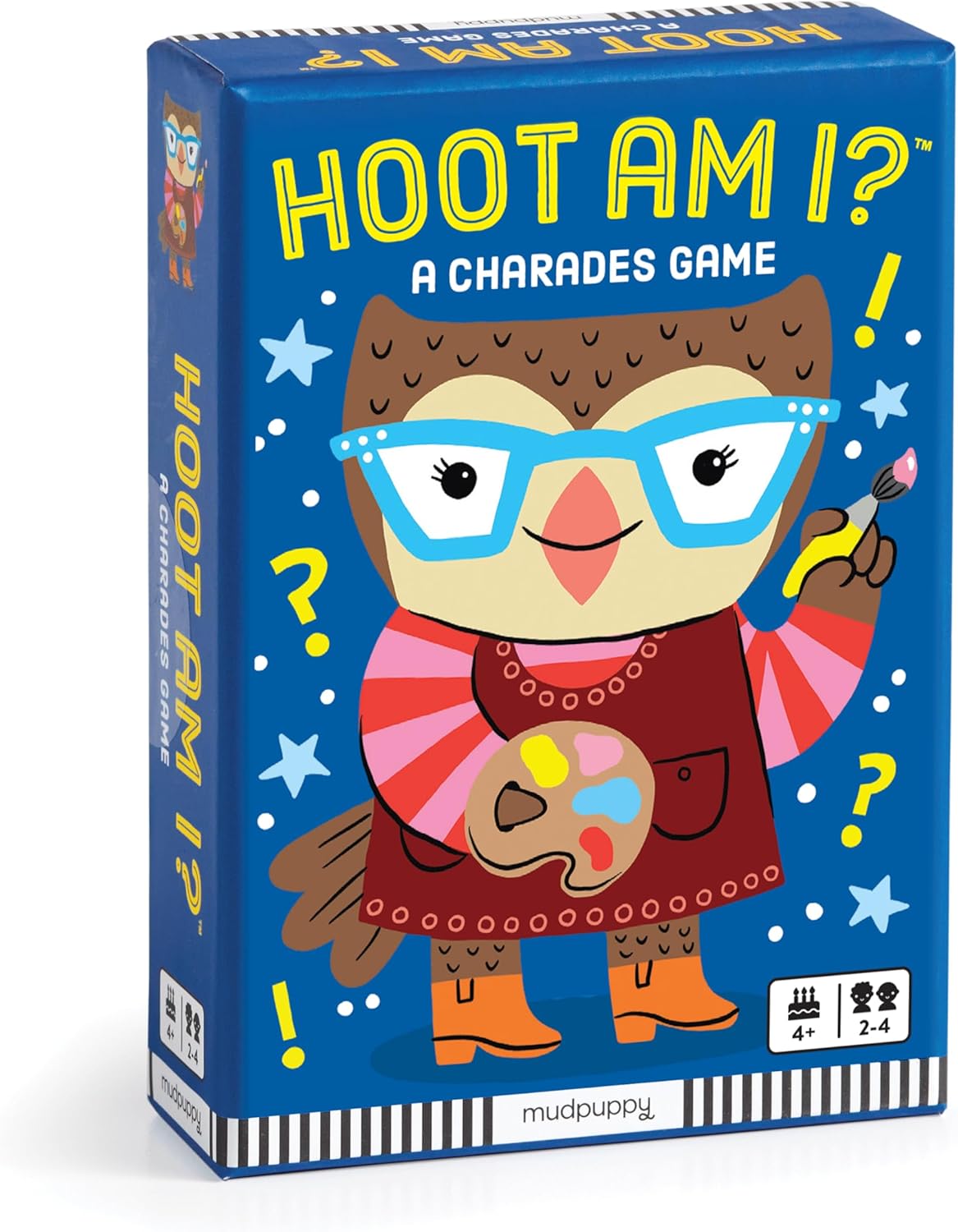 The Hoot Am I? Card Game from Mudpuppy reimagines the classic charades game with whimsical animal characters that capture the imagination and delight players of all ages. Its also easy to play! Simply pick a card out from the pile and act it out! The vibrant artwork and durable cardstock ensure hours of fun and laughter as players try to guess "Hoot" am I! Includes 40 cards