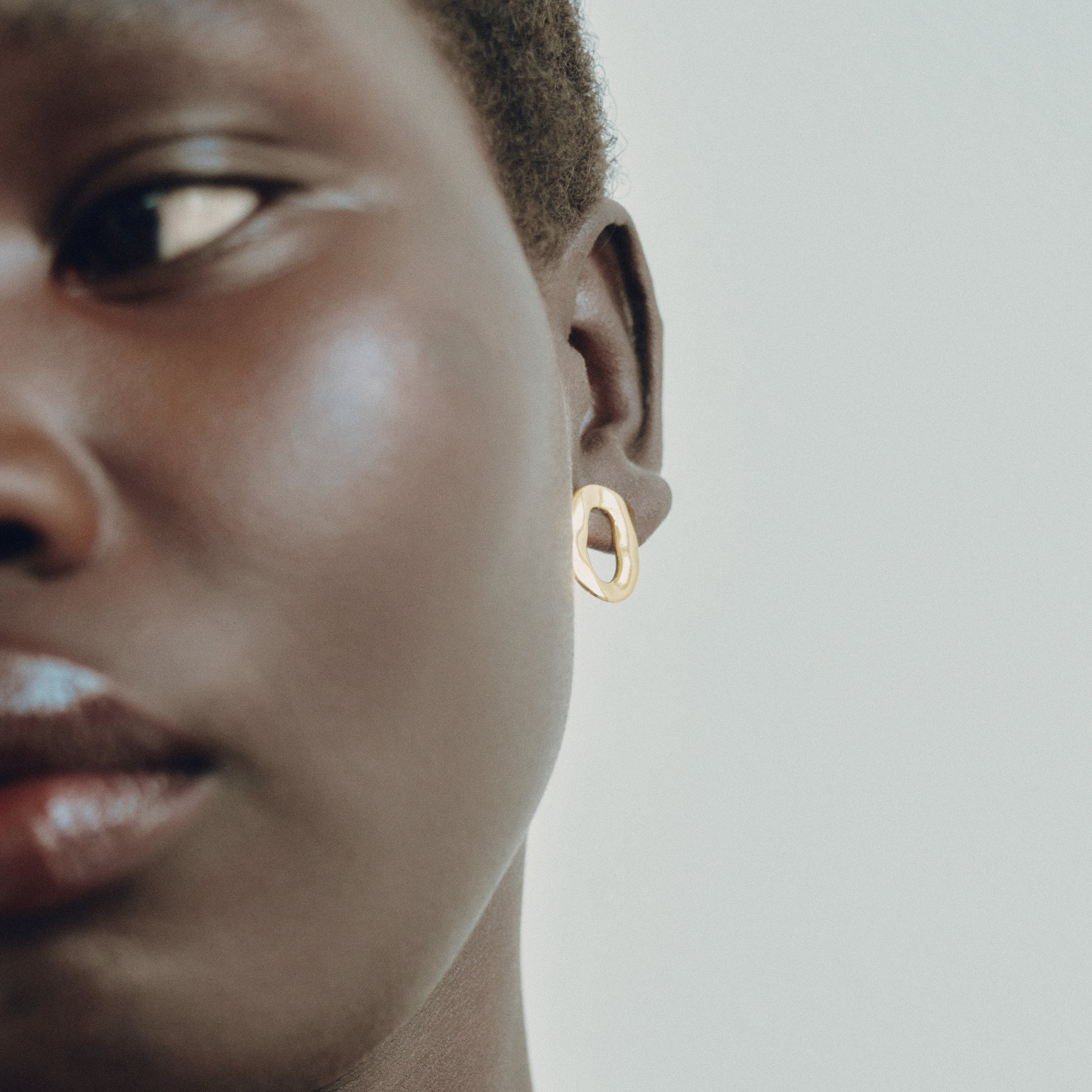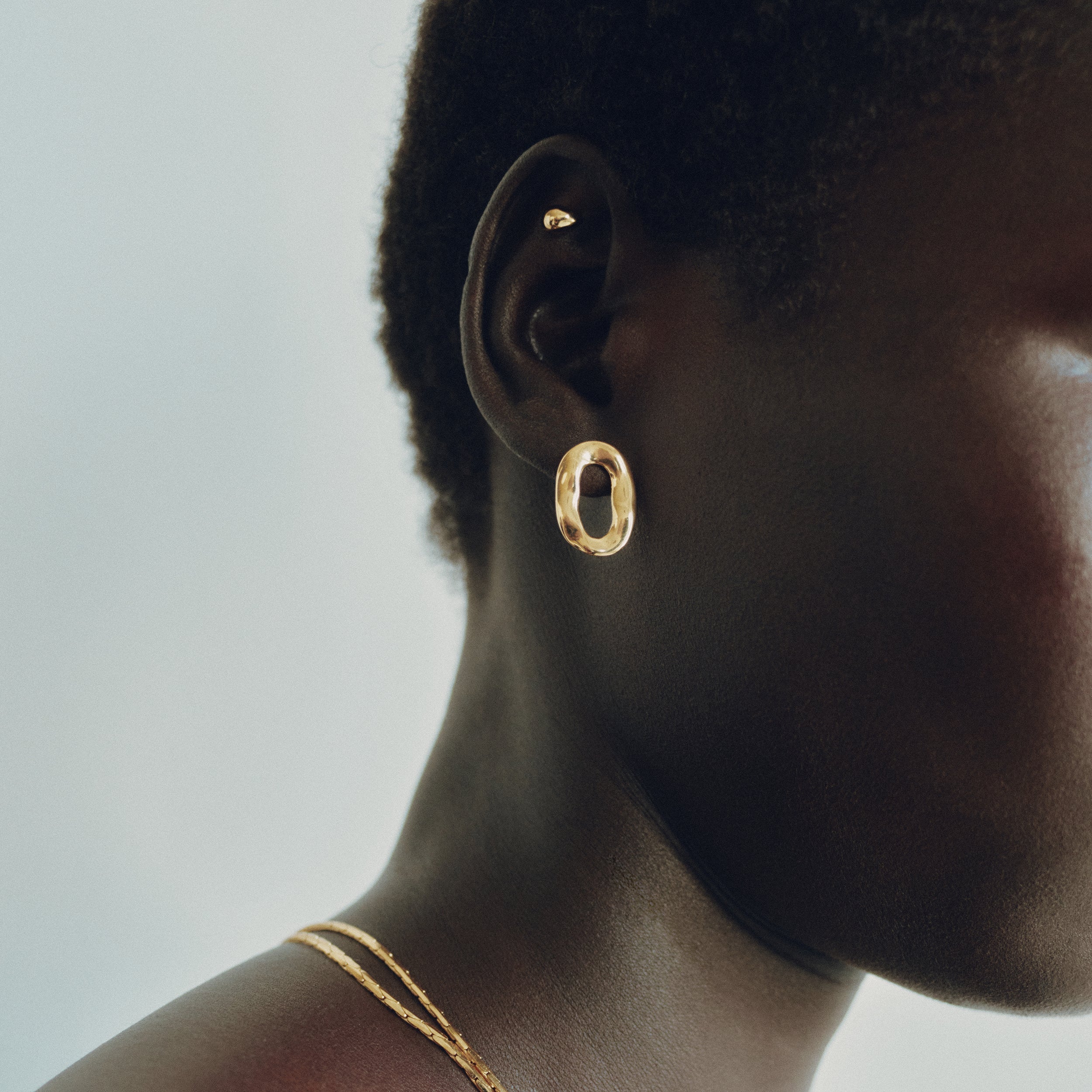 A molten touch for your everyday lineup. This hand-formed O-link stud brings effortless shine in a sleek, sculptural form.