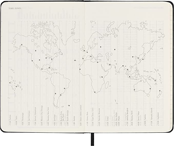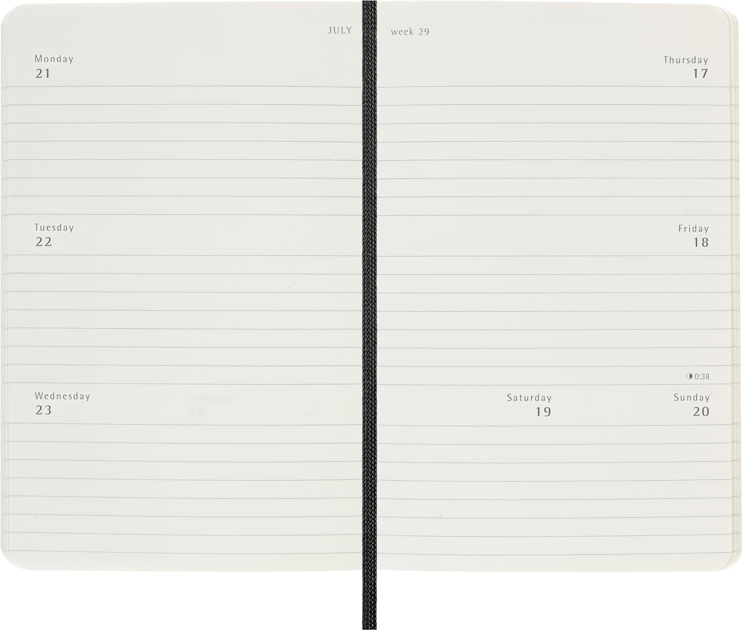 Plan the year week by week with the 12-Month Weekly Horizontal Diary/Planner in Black. Running from January to December 2026, this planner shows the seven days of the week horizontally across each two-page spread—giving you an at-a-glance view of each week’s appointments and to-dos. Monthly and annual calendar pages at the beginning allow for more long-term planning, letting you zoom out and view either each month or the whole year in one place. The intro pages are full of useful travel information, such as international time zones, measures and conversions. A set of stickers in the expandable pocket provide a fun and colorful way to personalize your schedule. Last but not least, the paperband B-side folds over to become a handy 2026 desk calendar for the office or home.