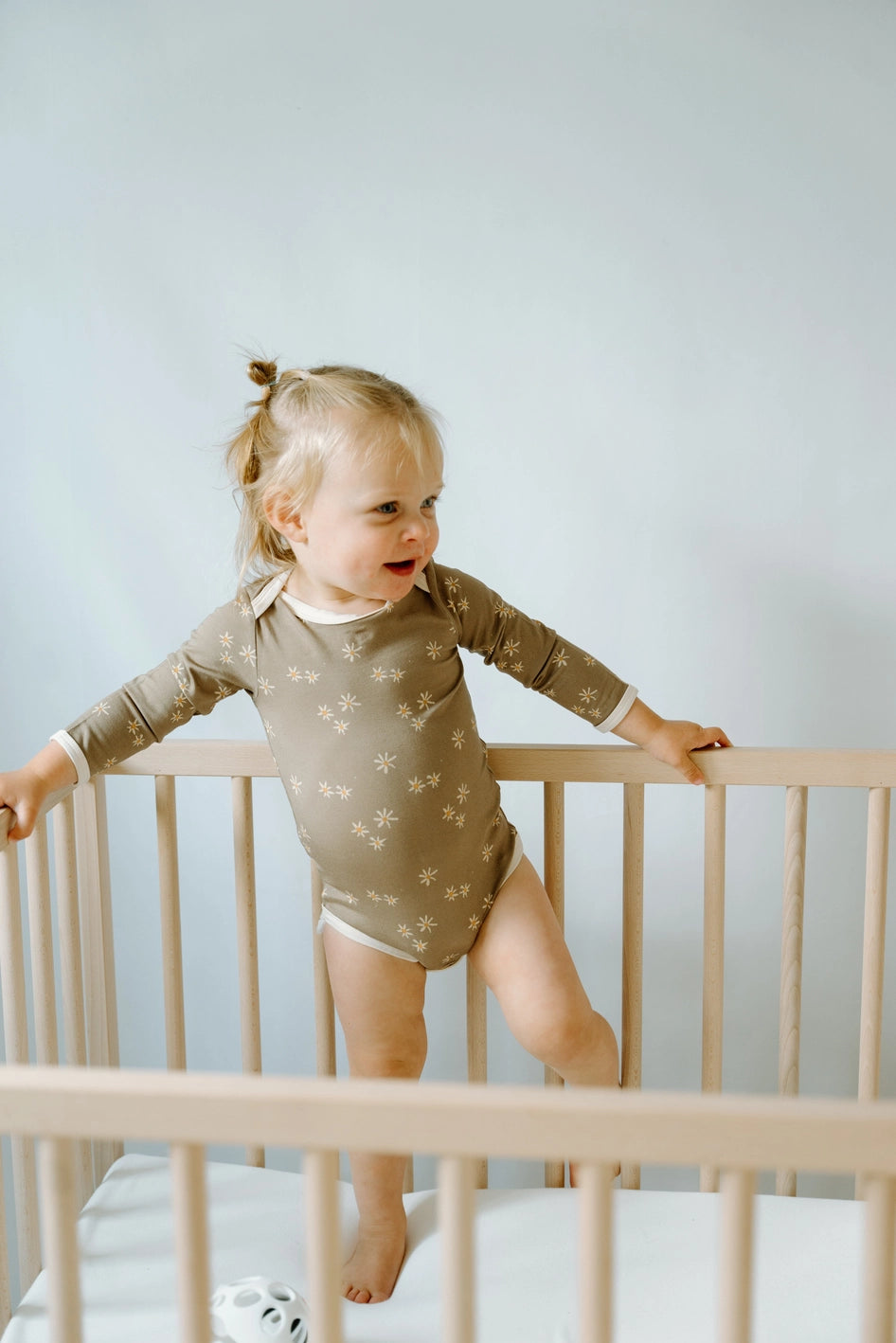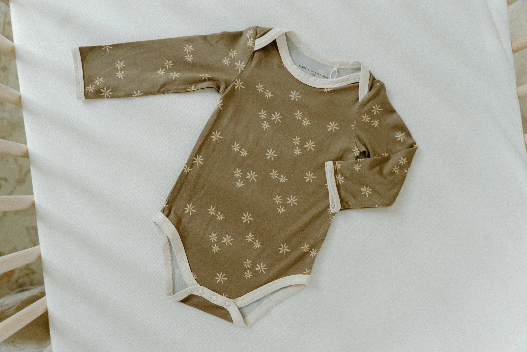 Classic onesie with snap bottom for easy diaper changes. The envelope neckline makes dressing little ones quick and easy. Made from buttery soft Bamboo Rayon, this onesie is the perfect daywear basic for babies.