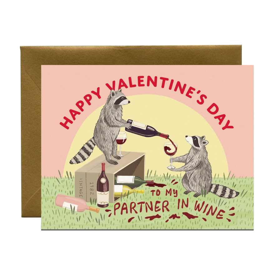 Raccoon Partner In Wine Valentine Card