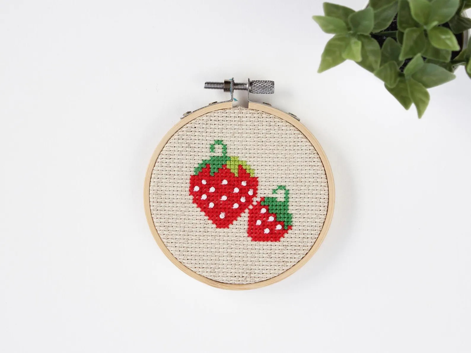 This design was stitched on 14 count Natural AIDA cloth, and is mounted in a 3" hoop. Designed and made in Toronto!