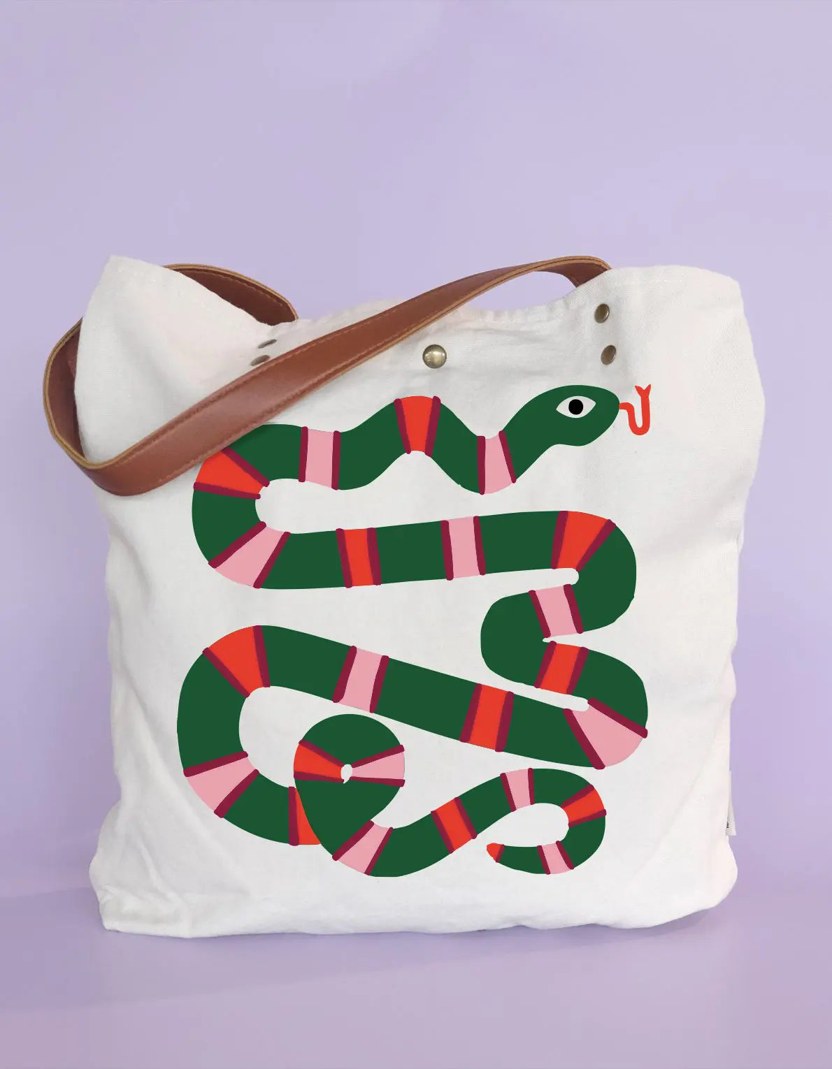 These canvas tote bags are custom made with heavy-weight, unbleached natural canvas, and are equipped with reinforced, vegan leather straps. It has functional details like brass snap closures and a handy interior pocket to keep your phone and keys at close reach.