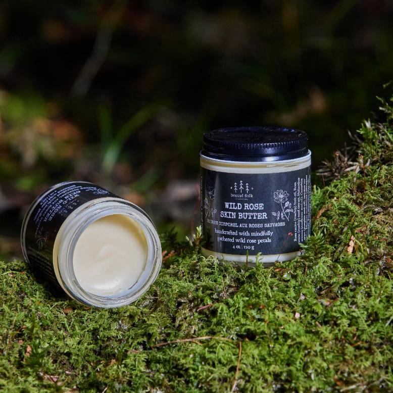 Each spring, boreal folk sustainably harvests wild rose petals to infuse into this deeply nourishing skin butter. A decadent blend of wild rose extract and nourishing botanicals. This rich and velvety butter melts into your skin, providing deep moisturization and leaving it feeling soft, smooth, and delicately scented with the enchanting aroma of wild roses.