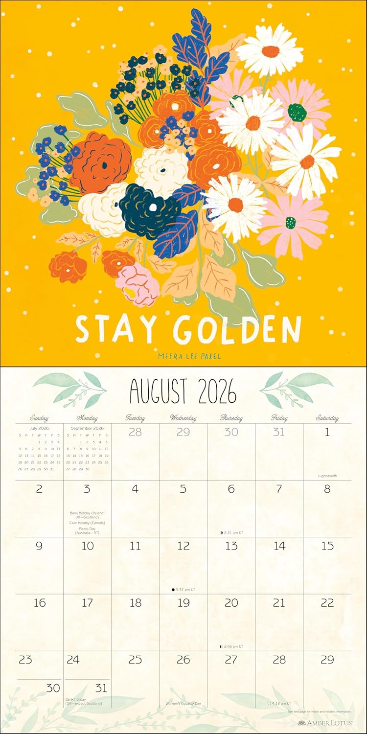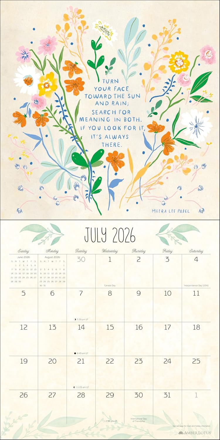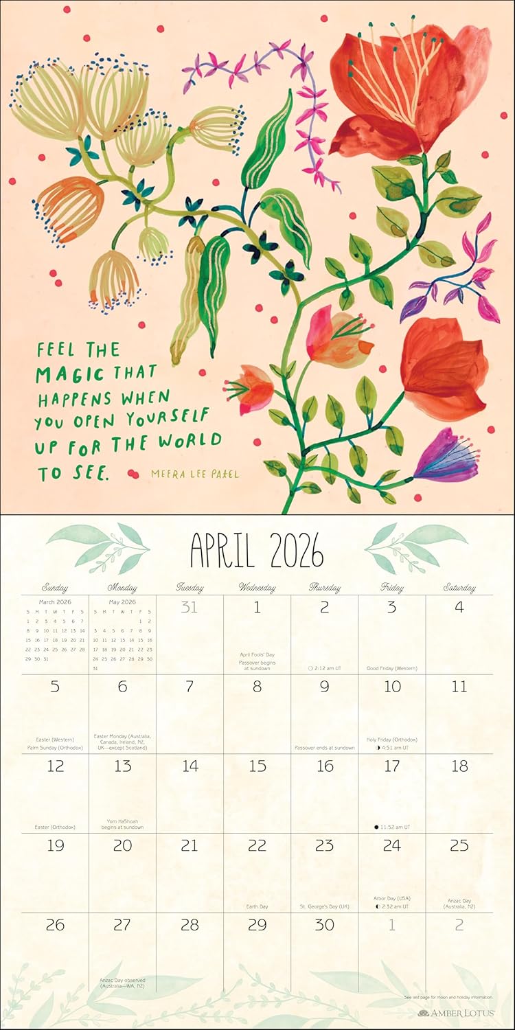 This uplifting 12-month wall calendar by Meera Lee Patel encourages self-acceptance, inclusivity, and personal growth through inspiring messages centered on love, courage, and vulnerability. Featuring art and quotes from her bestselling journals, Start Where You Are and Create Your Own Calm, each month offers gentle reminders to embrace the journey of becoming.